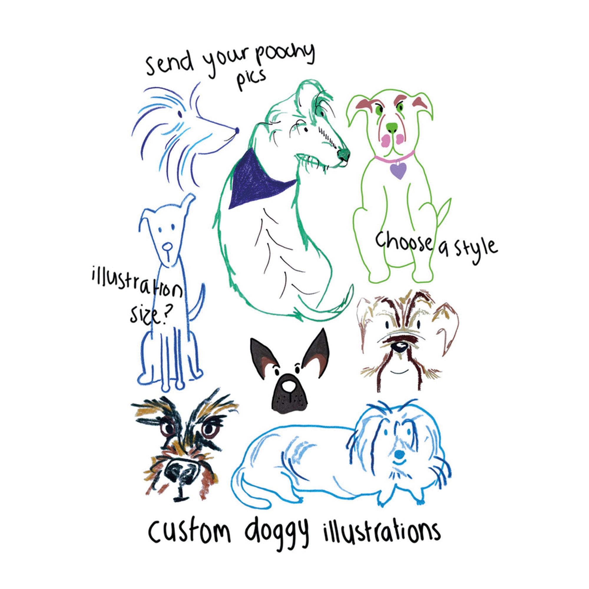 Send your reference image - please note any special/key details of your pet, choose your style, colour/monochrome, sketchy/linear, and illustration sizeāØ